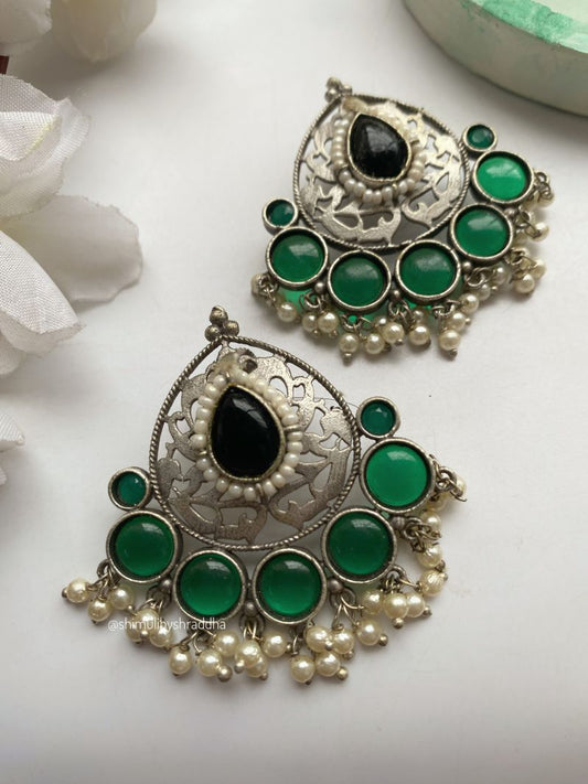 GERMAN SILVER STONE JHUMKA