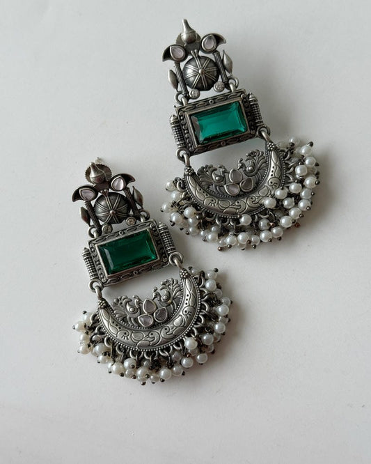 SILVERLOOKALIKE MAYUR GHUNGHAROO EARRINGS